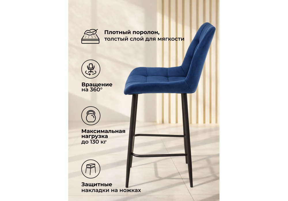 Барный стул поворотный Woodville Челси 360 синий (zd 798) / черный np 632580 в Иваново