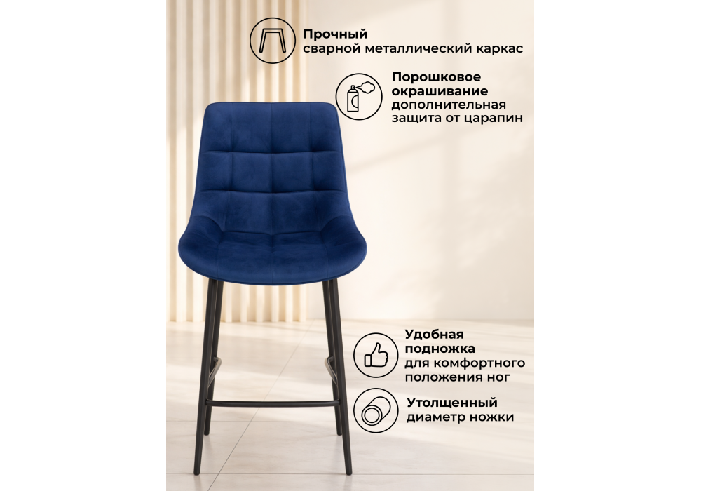 Материал каркаса - металл; Материал сиденья - велюр; Материал обивки - велюр; Цвет ножек - черный; Ширина - 50; Глубина - 58; Высота - 99; Ширина сиденья - 46; Глубина сиденья - 41; Высота сиденья - 63;