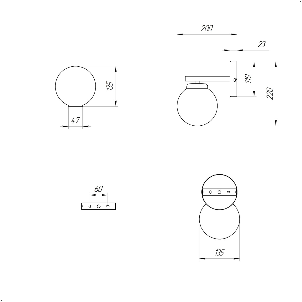 - Форма плафона: Шар