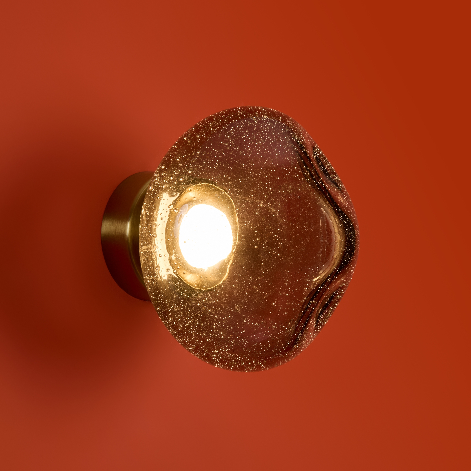 Арматура — металл. Стеклянные плафоны с пузырьками в трёх цветах: дымчатый, прозрачный, янтарный. Интегрированный LED источник света 3000К, Ra 80, угол 180°. Высота регулируется.