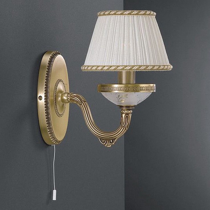 Бра Reccagni Angelo A 6402/1 Итальянского производсва – уникальное сочетание высокого качества и удивительных фактур. Этот светильник Классического стиля хорошо подойдет Для гостиной и придаст помещению мягкий и приятный свет. Плафоны белые из ткани. Арматура бронза из металла. Кол-во ламп - 1шт. Общая мощность 60W