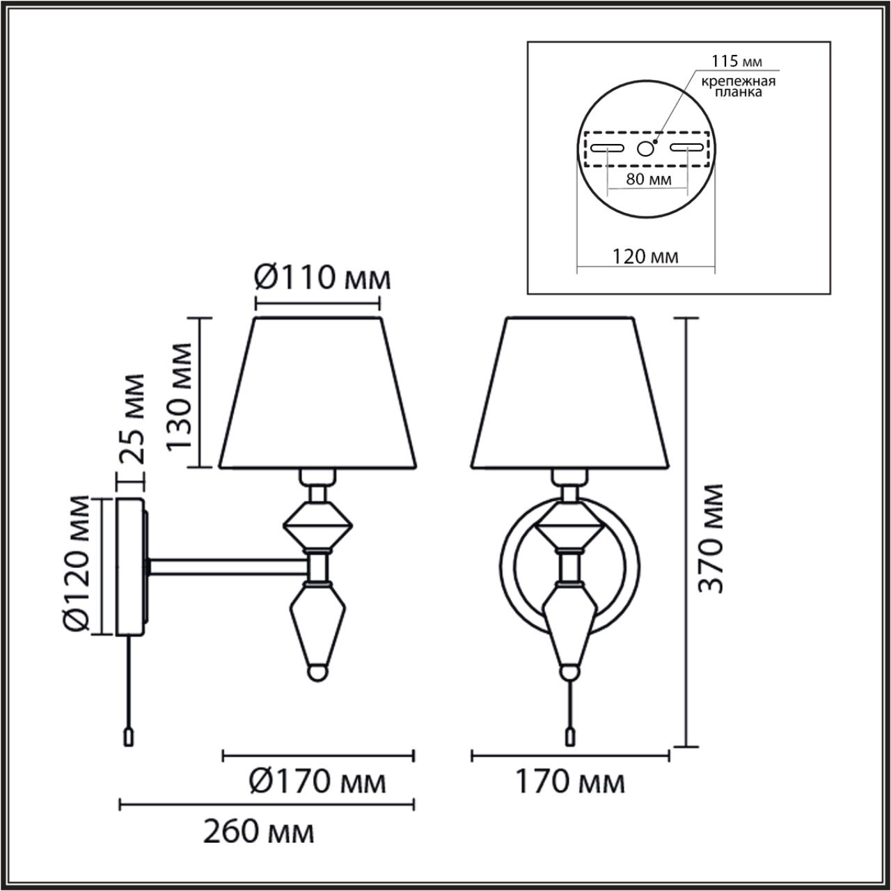 - Направление плафонов: Плафон вверх