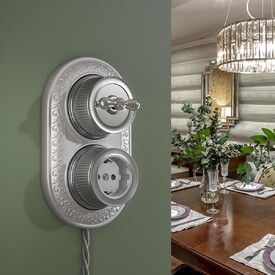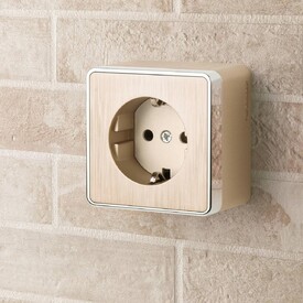 Розетка LK Studio открытой установки без заземляющих контактов с защитными шторками (сосна) 813325
