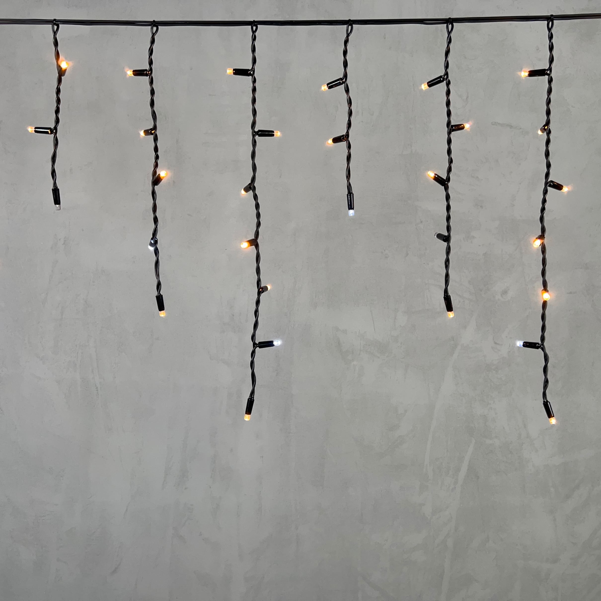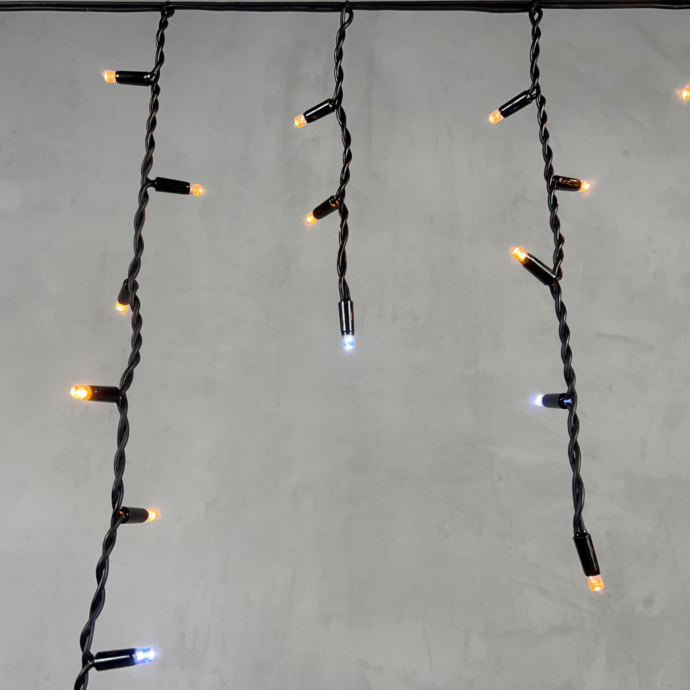 Купить "Гирлянда Бахрома 3,1 x 0,5 м Экстра Тепло-Белая с Мерцанием Белого Диода 220В, 120 LED, Провод Черный Каучук, IP65 LTC LL120BLW-1-2EWW"