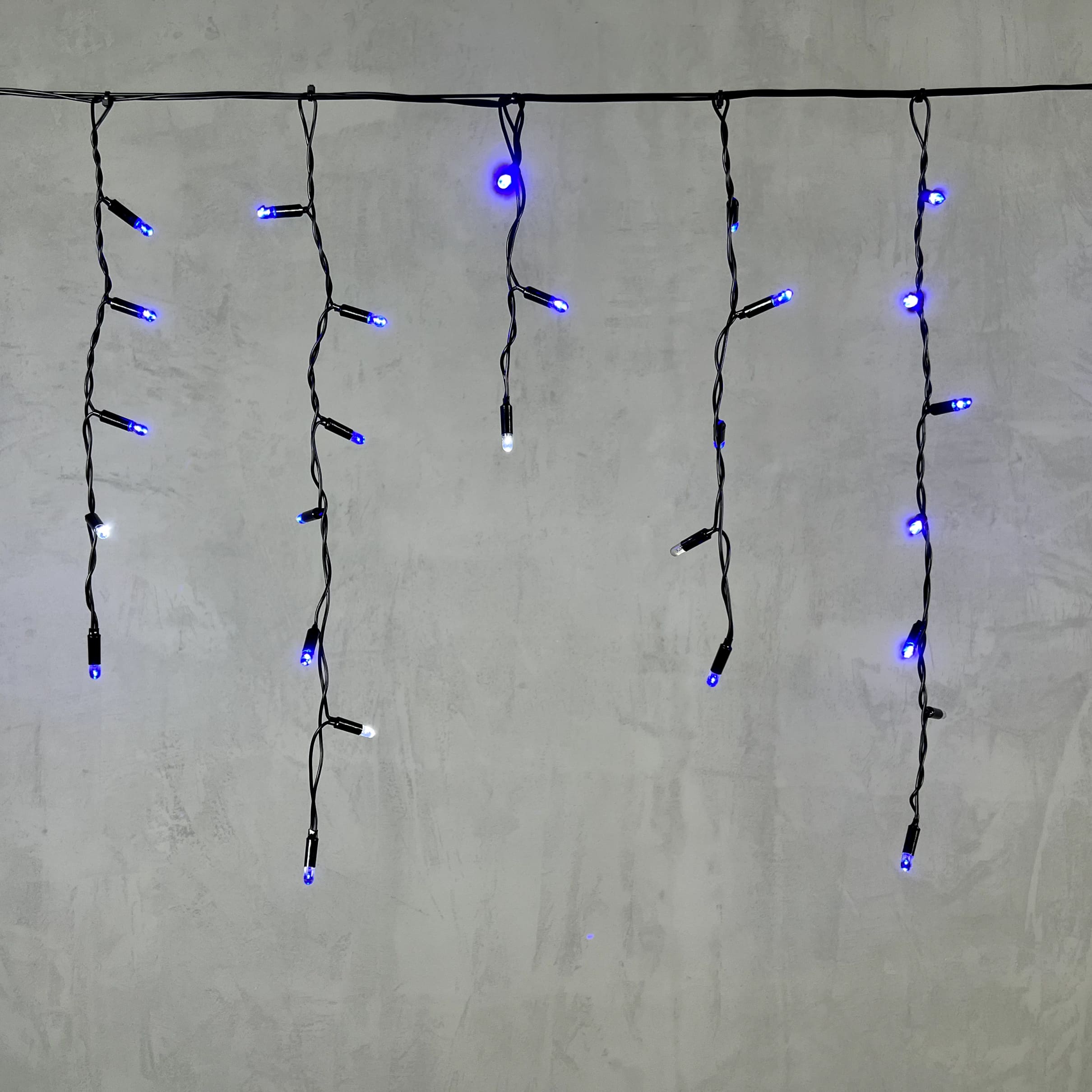Купить "Гирлянда Бахрома с Колпачком 3,1 x 0,5 м Синяя с Мерцанием Белого Диода 220В, 120 LED, Провод Черный ПВХ, IP65 LTC PIL120BLWCAP-11-2B"