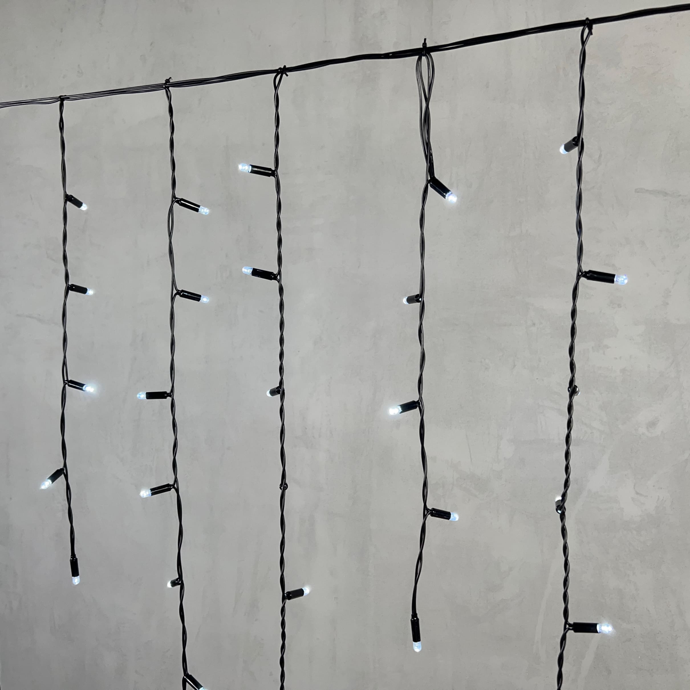 Купить "Гирлянда Бахрома с Колпачком 3,2 x 0,9 м Белая 220В, 168 LED, Провод Черный ПВХ, IP65 LTC PIL180CAP-11-2W"