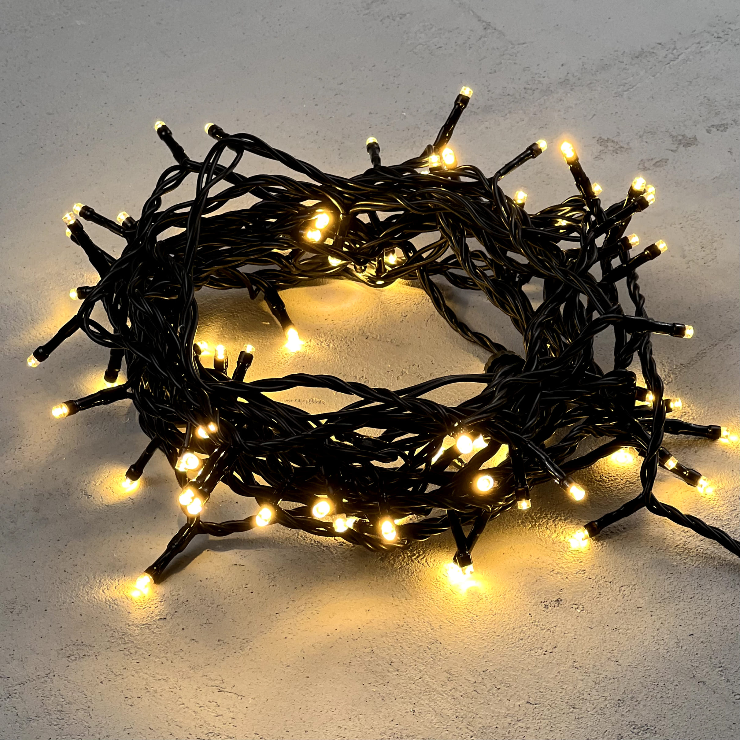 Гирлянда Нить 10м Тепло-Белая 24В, 100 LED, Провод Черный ПВХ, IP54 LTC PST100-11-1WW в Иваново