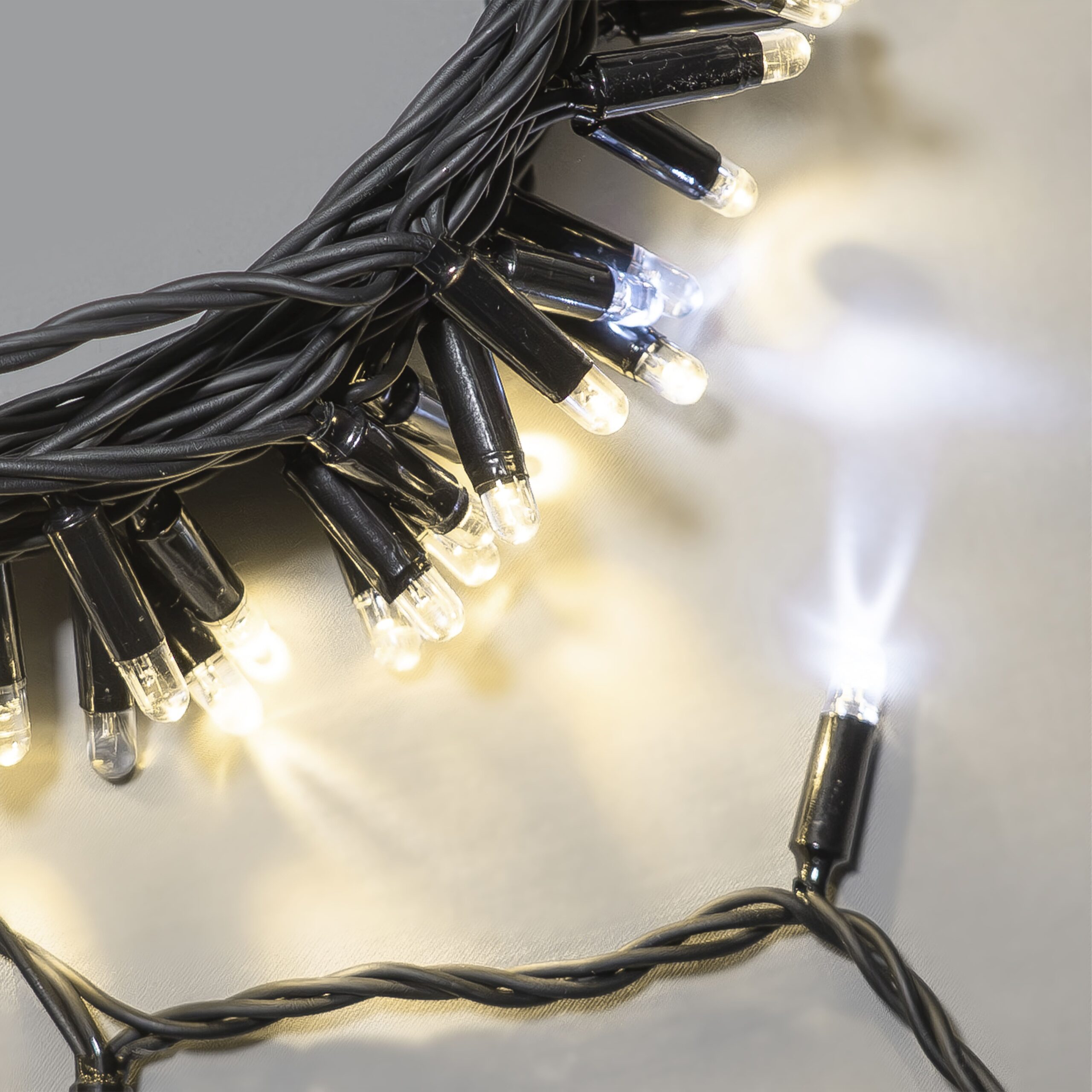 Гирлянда Нить 10м Тепло-Белая с Мерцанием Белого Диода 220В, 100 LED, Провод Черный Каучук 2, 3мм, IP65 LTC ECO100BLW-1-2WW в Иваново