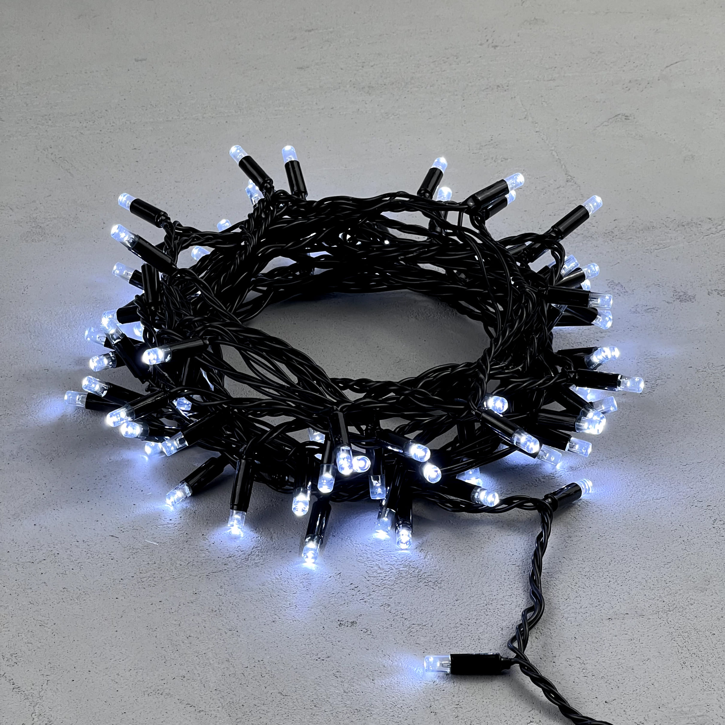 Гирлянда Нить с Колпачком 10м Белая 24В, 100 LED, Провод Черный ПВХ, IP65 LTC PST100CAP-11-1W в Иваново