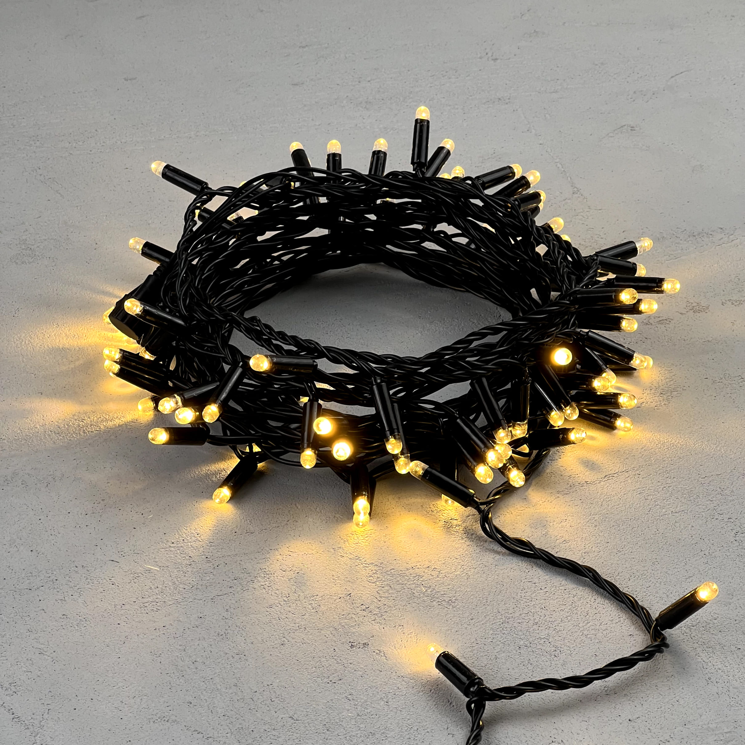 Купить "Гирлянда Нить с Колпачком 10м Тепло-Белая 24В, 100 LED, Провод Черный ПВХ, IP65 LTC PST100CAP-11-1WW"