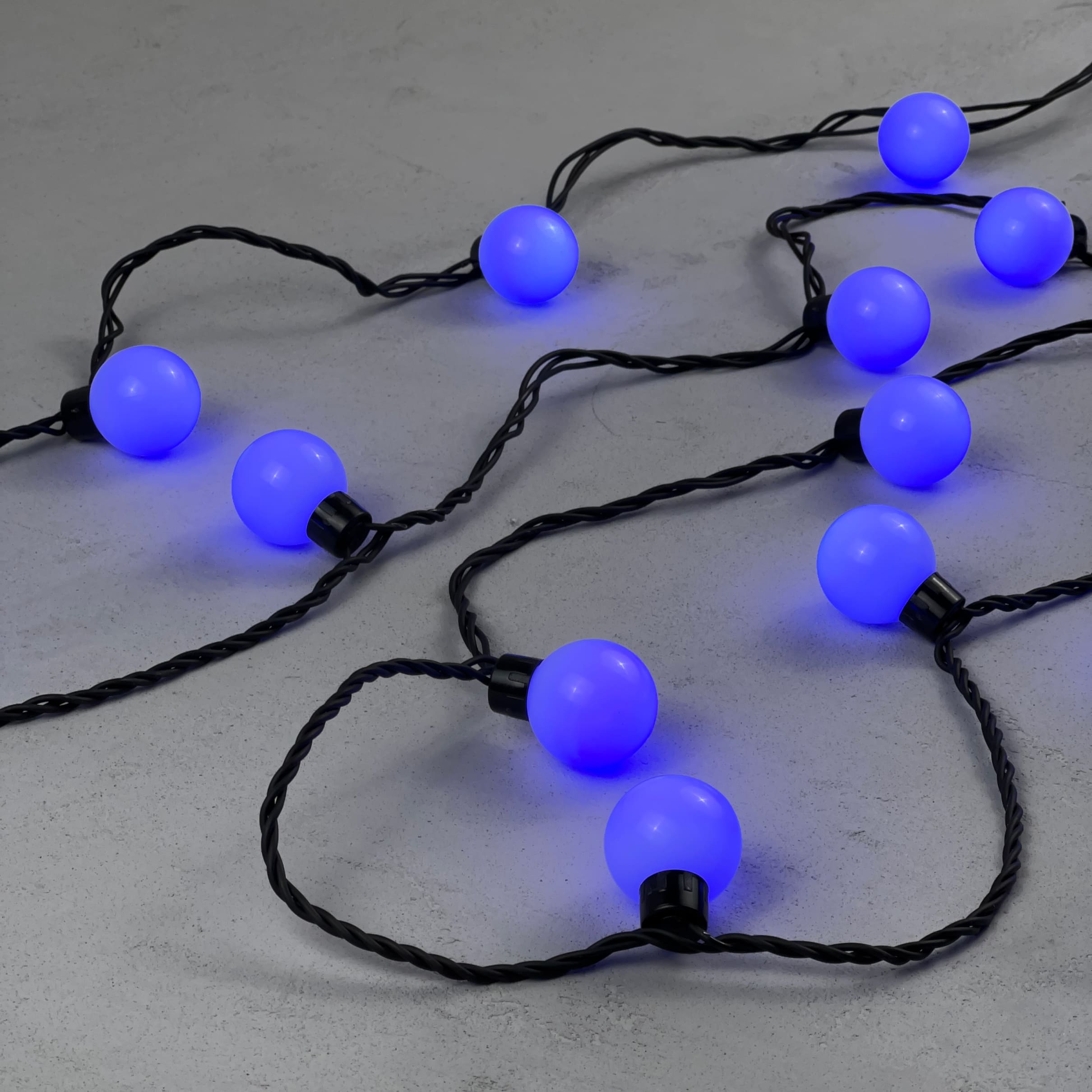Купить "Гирлянда «Шарики» 5м Синяя 220В, Диаметр Шарика 40мм, 20 LED, Провод Черный Каучук, IP65 LTC HB20-1-2B"