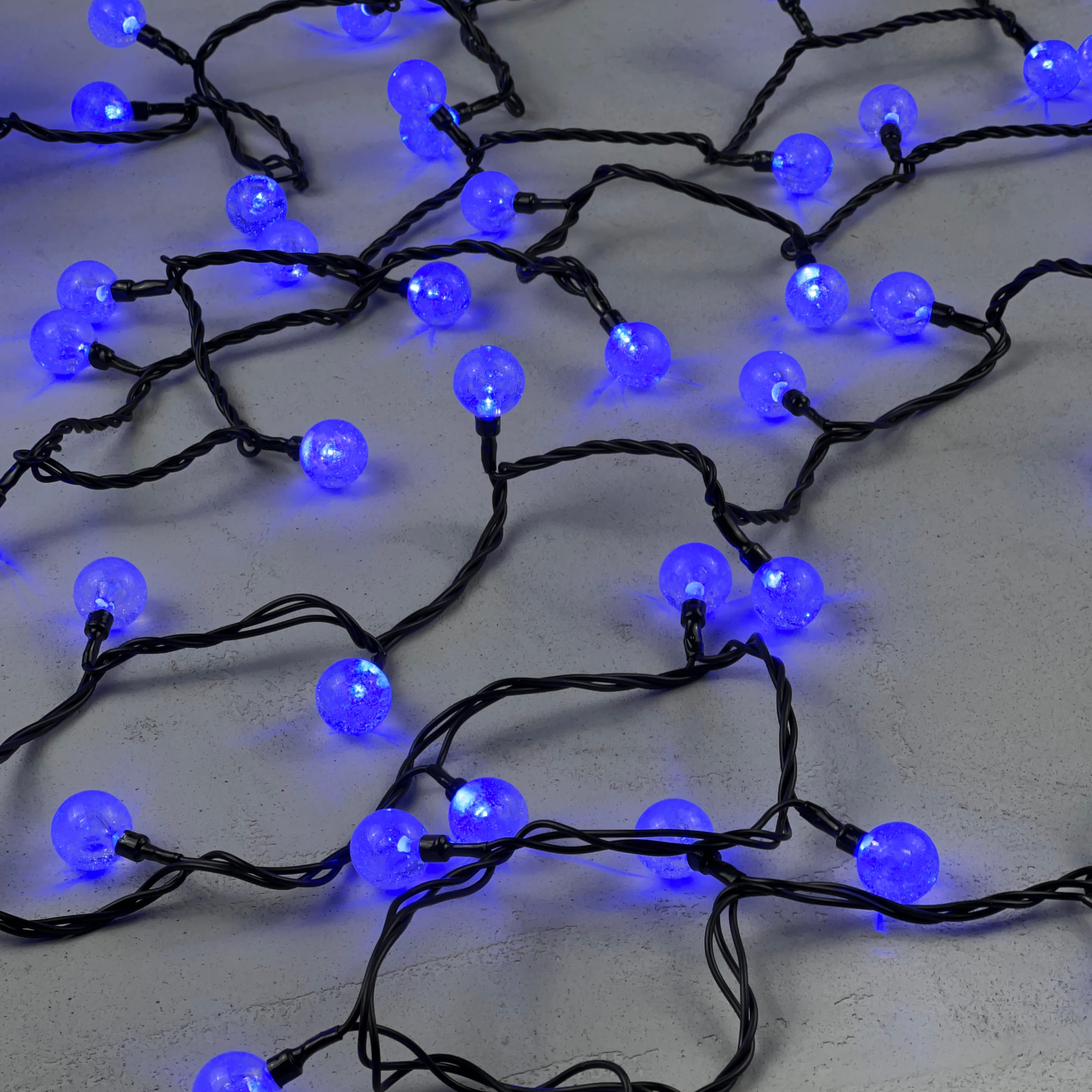 Купить "Гирлянда «Шарики» 10м Синяя 220В, Диаметр Шарика 23мм, 100 LED, Провод Черный Каучук 2,3мм, IP54 LTC PCS-100B-B"