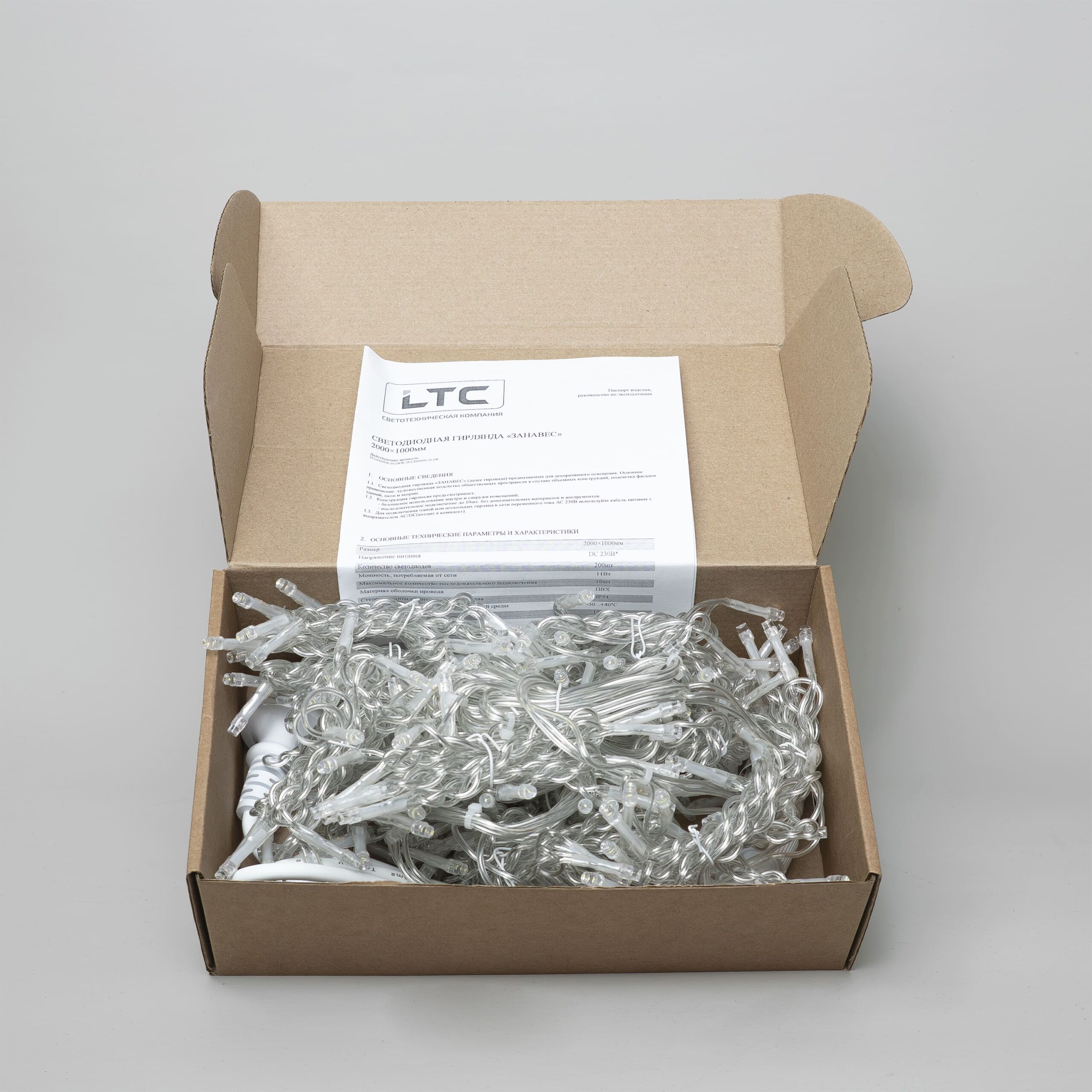 Гирлянда Занавес Облегченный 2 x 1 м Тепло-Белый 220В, 200 LED, Провод Прозрачный ПВХ, IP54 LTC PCL200NOT-10-2WW в Иваново