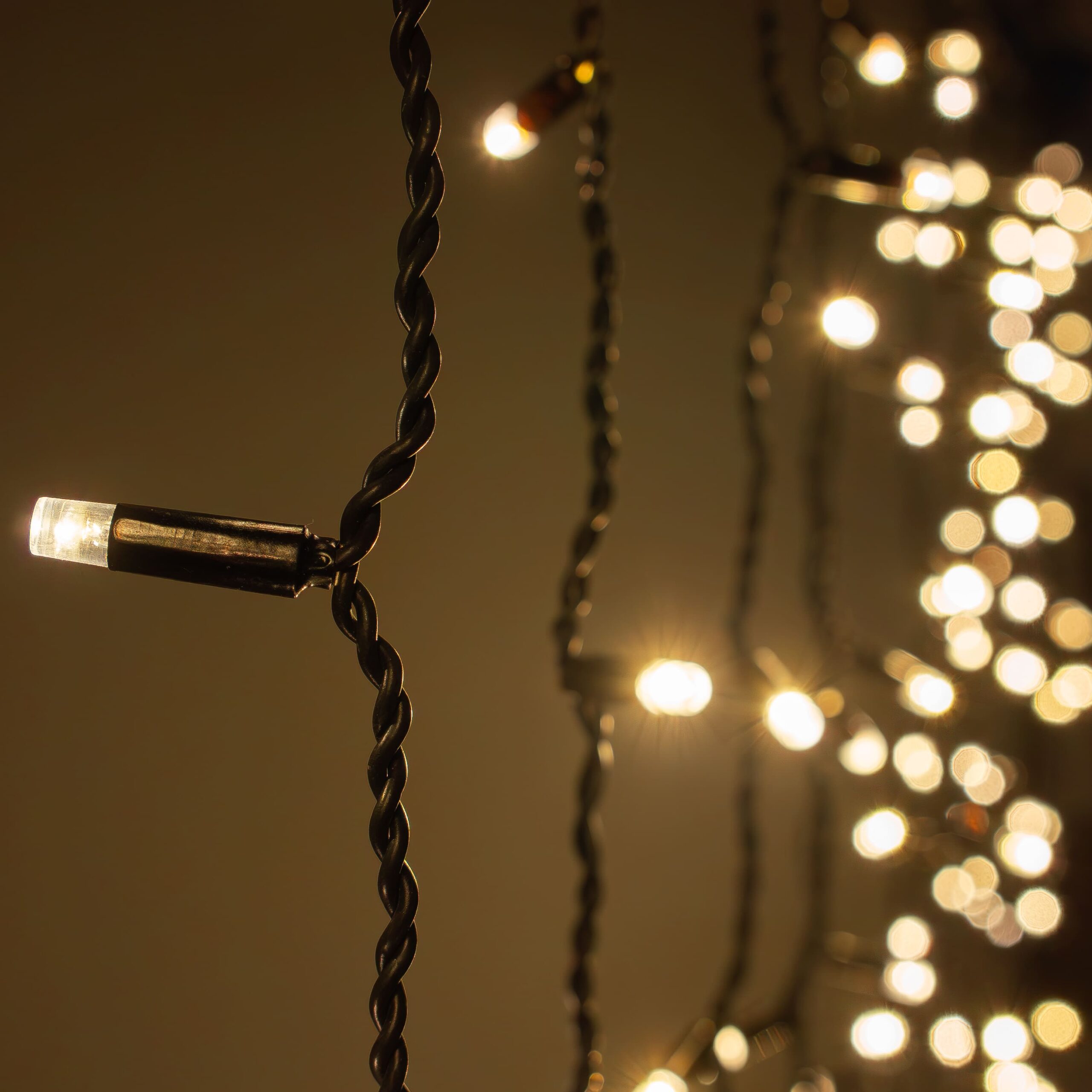 Купить "Гирлянда Занавес Облегченный c Колпачком 2 x 1 м Тепло-Белый 220В, 200 LED, Провод Черный Каучук 2,3мм, IP65 LTC ECO200NOT-1-2WW"