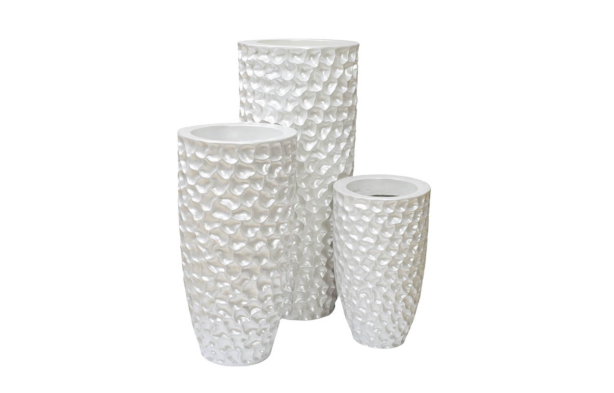 Красивое напольное кашпо жемчужно-белого цвета идеально подходит для стильных современных интерьеров. Высокое напольное кашпо имеет достаточно глубокое дно и предназначено для комнатных растений в горшках или композиций из искусственных растений. Для его изготовления используется высококачественная полисмола. Изделие притягивает взгляд и органично вписывается в любое помещение, будь то квартира или офис. Кашпо можно использовать как отдельный предмет для декора помещения, так и в качестве основы для композиций из цветов.