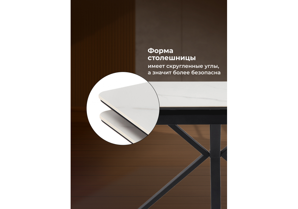 Керамический стол 140(200)х80 раскладной Woodville Старлайт snow alpin white / черный 622891 в Иваново