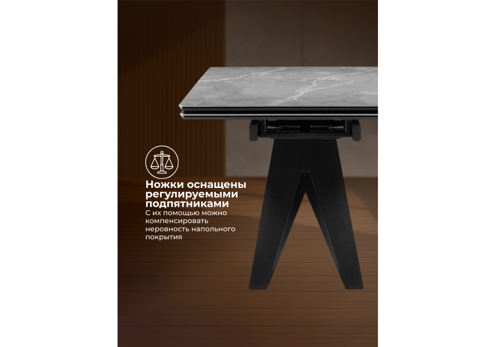 Купить "Керамический стол раздвижной Woodville Блэкберн 140(200)х80 серый мрамор larka grey / черный 625933"