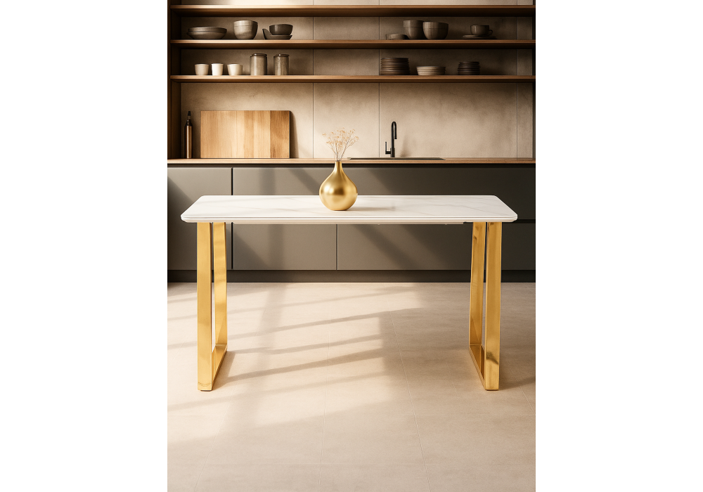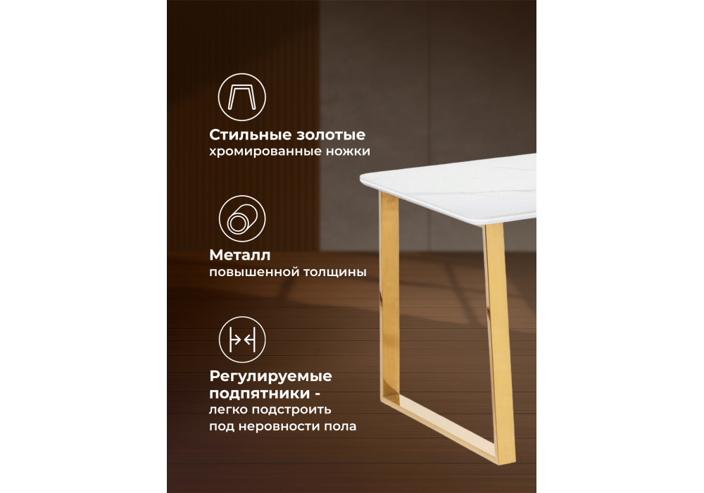 Керамический стол Woodville Селена 2 140х80х77 белый мрамор / золото 571412 в Иваново