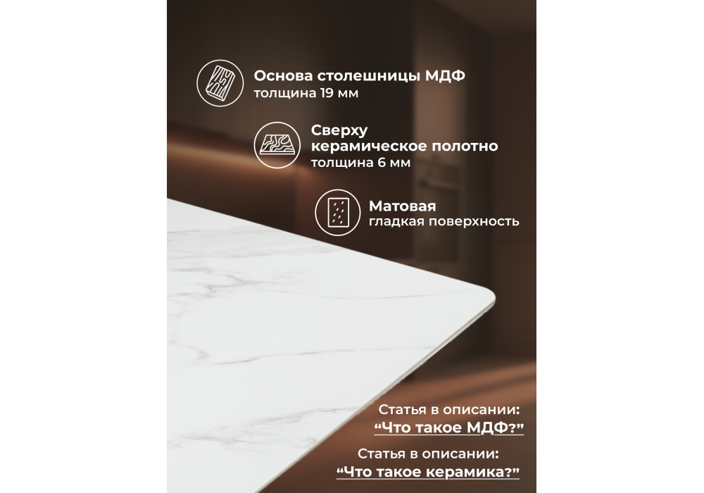 - Материал столешницы: Керамика