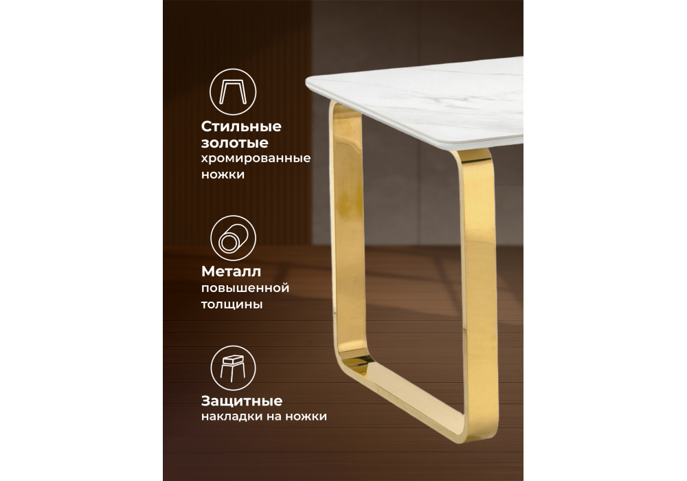 Керамический стол Woodville Селена 4 140х80х77 белый мрамор / золото 571414 в Иваново