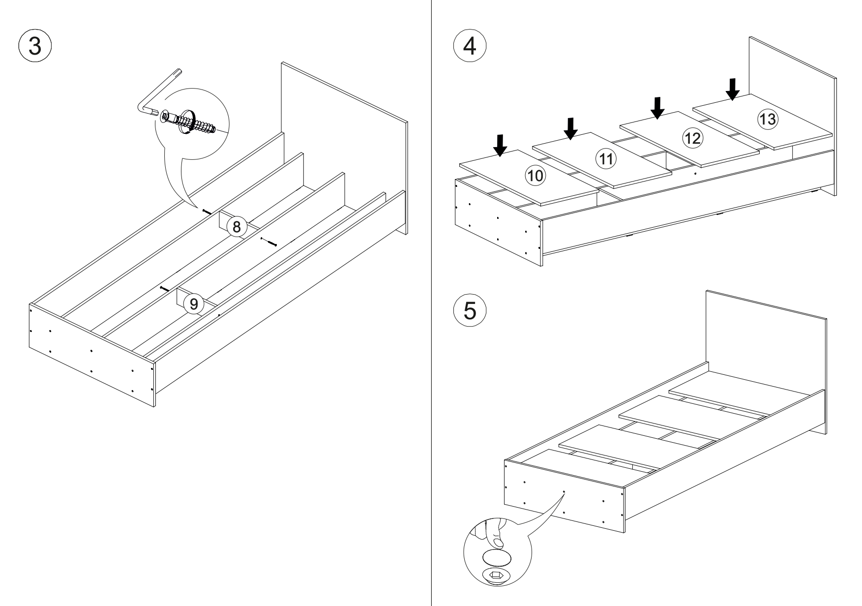 Материал каркаса - ЛДСП; Ортопедическое основание - в комплекте; Материал ортопедического основания - настил; Цвет каркаса - Белый; Размер спального места - 80 х 200; Длина кровати - 203,2; Ширина кровати - 83,5; Высота изножья - 27; Высота изголовья - 70;