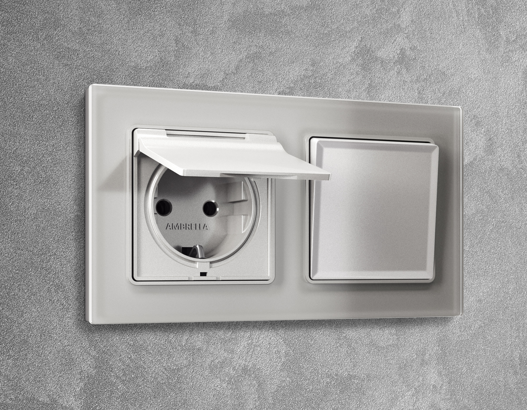Купить "Лицевая панель для электрической розетки с заземлением со шторками IP44 Ambrella Volt Quant ALFA AP4080"