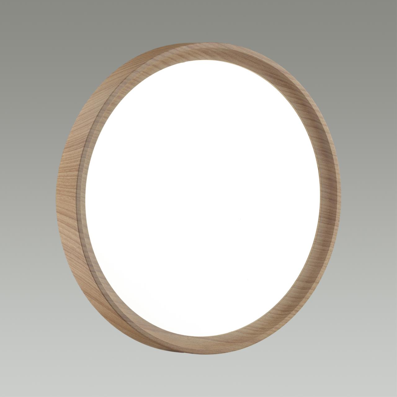 Светильник 7603/ELN линии WOODI состоит из металлического основания (базы) и пластикового рассеивателя. Материал рассеивателя - высококачественный пластик марки PMMA 2.0 белого цвета с матовой поверхностью, без текстуры. Пластик обеспечивает светильнику равномерное рассеивание и хорошее светопропускание. Форма плафона: круглая, декорирована ободом светло-коричневого цвета "под дерево". Степень защиты IP43 позволяет использовать светильник в определенных зонах влажных помещений. В комплект входит LED модуль с линзами, мощностью 76Вт, которая соответствует лампе накаливания 740Вт. А также переключатель температуры цвета (ССT) на драйвере, с помощью которого осуществляется изменение цветовой температуры 3000/4000/6000К и переход светильника в режим теплого/белого/холодного света. Для установки необходимого режима рекомендуется использовать удлиненный тонкий предмет типа небольшой отвертки.