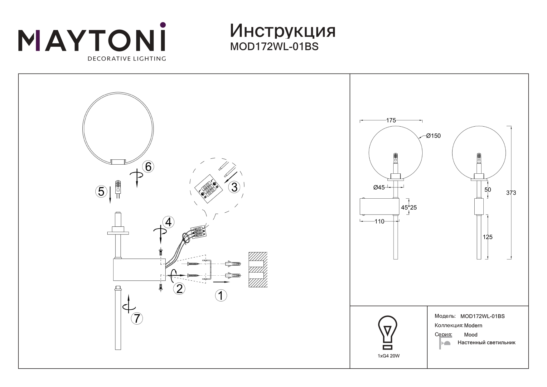 - Количество ламп: 1 шт