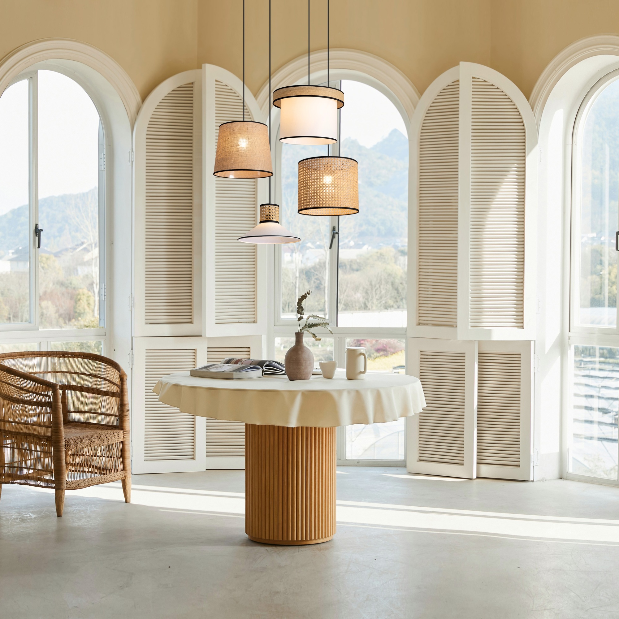- Материал плафонов: Ротанг
