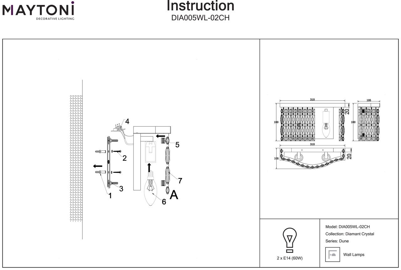 Настенный светильник Maytoni Dune DIA005WL-02CH — это надёжный и долговечный осветительный прибор, который прослужит вам долгие годы, не теряя своей яркости и качества света.