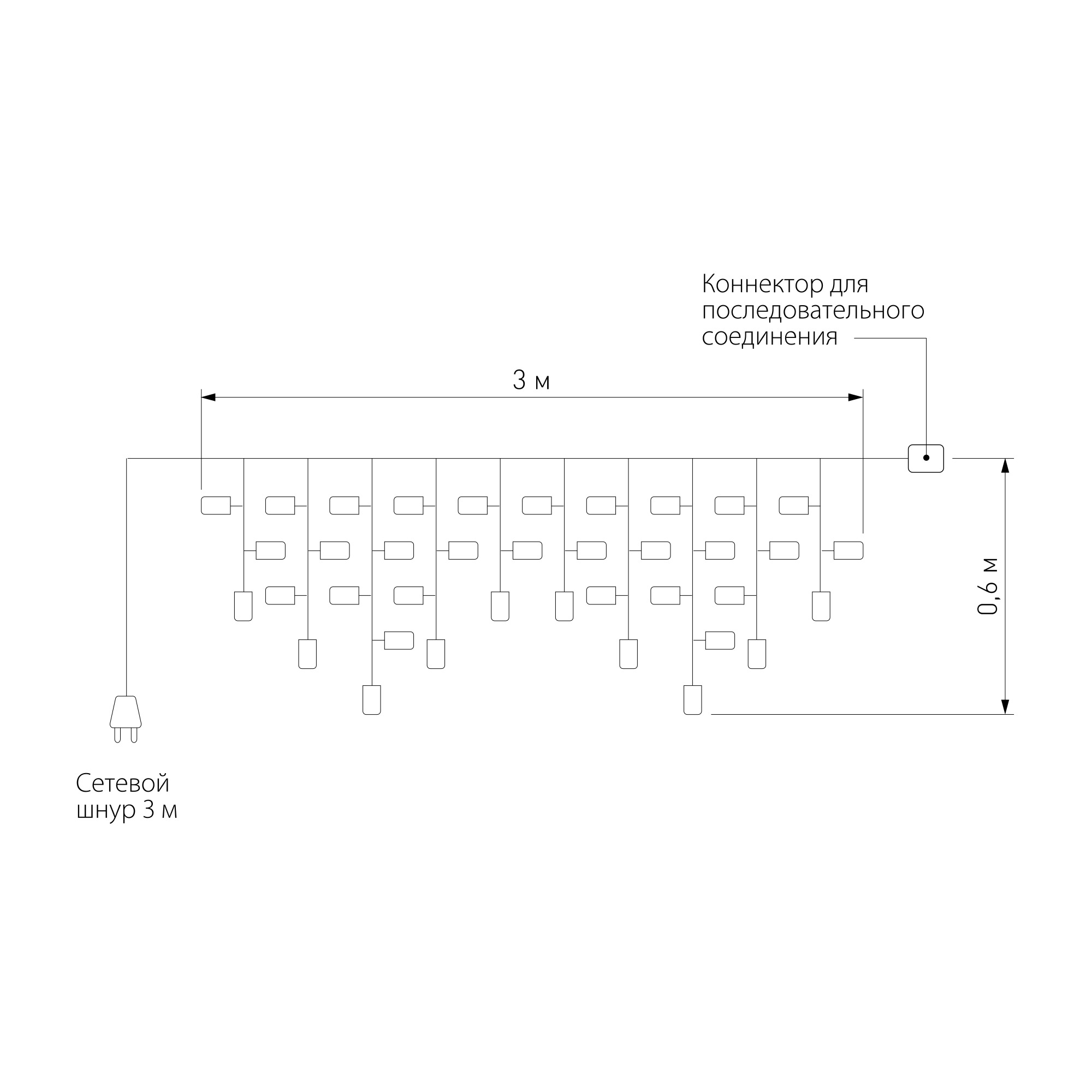 Гирлянда оснащена вилкой и работает от сети 220 В / 50 Гц.