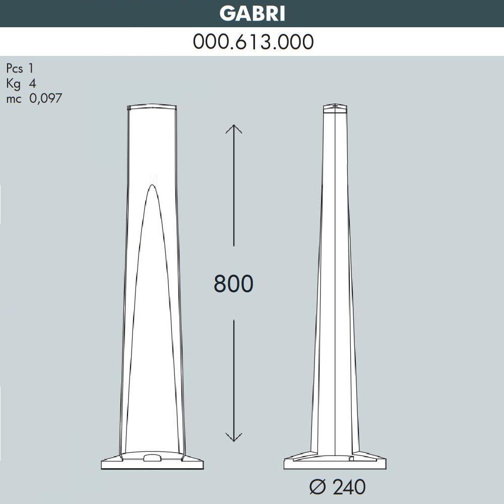 Парковый столб FUMAGALLI, модель GABRI. Опора наземная для светильников-бра, садовых прожекторов серий LUCIA, GERMANA, GUSEPPE. Высота опоры без светильника равна 800мм.. Светильник крепиться с одной или с двух сторон, в зависимости от модели. Корпус изготовлен из современного вандалостойкого не горючего полимера RESIN. Прочного, окрашенного в массе, не ржавеющего и не выгорающего на солнце. Опора освещения и светильники на ней не требуют заземления и относятся к 2 классу электробезопасности. Срок службы - не менее 20 лет. Температура использования от -60 до +90.