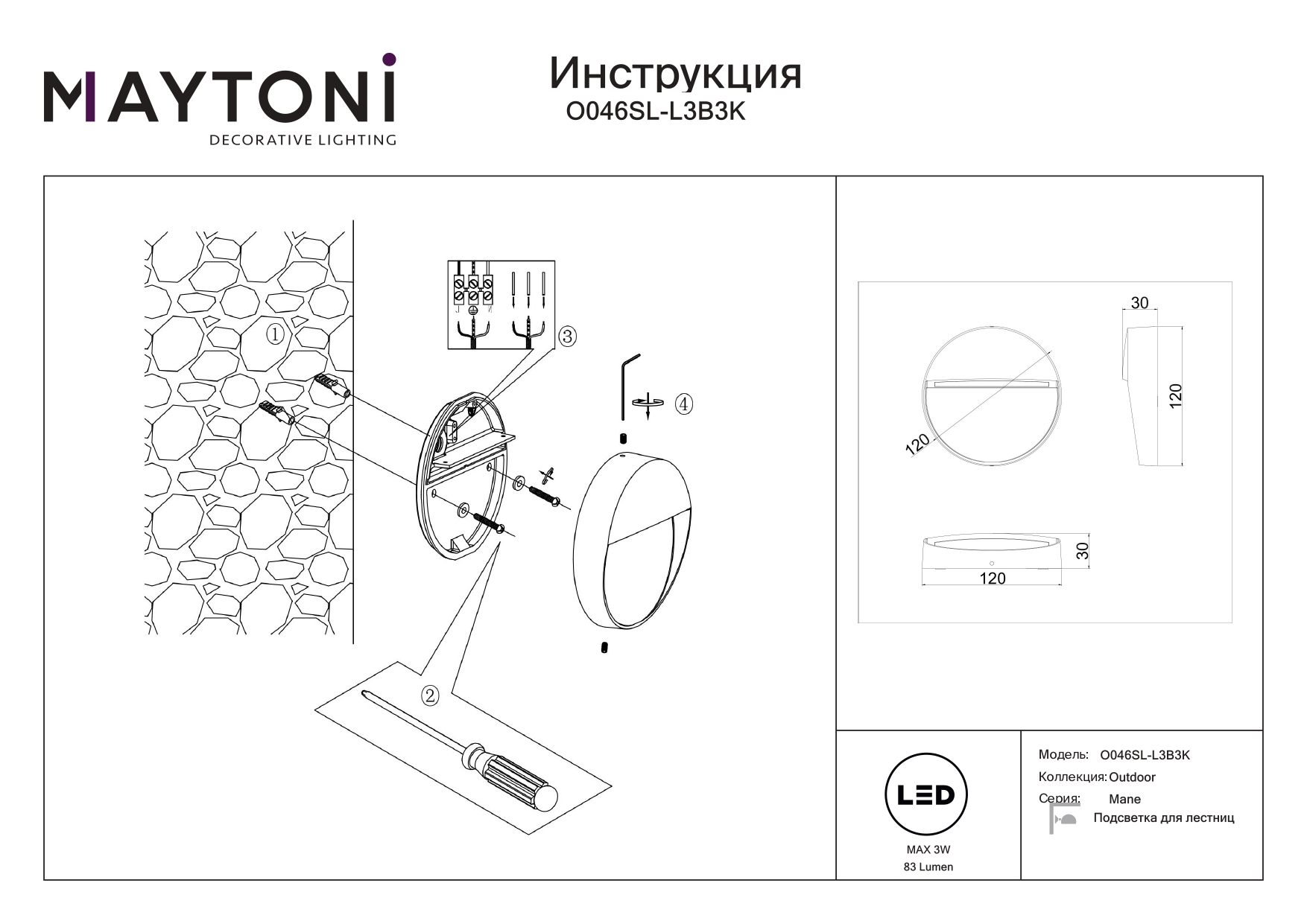 Подсветка для лестниц Maytoni Mane O046SL-L3B3K в Иваново