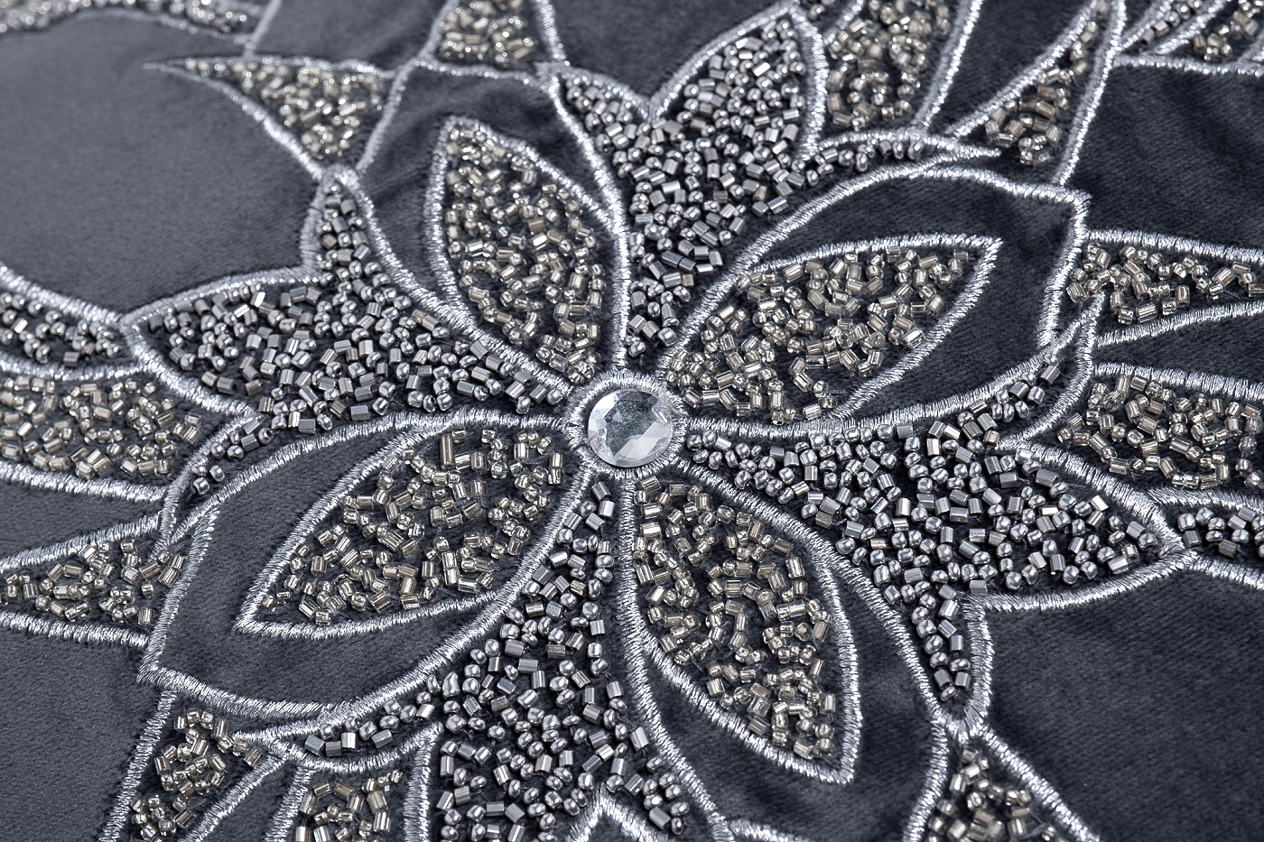 Декоративная подушка «Цветок» – настоящее произведение искусства. Принт, украшающий подушку, представляет собой лепестки разных форм и размеров, обретающие форму оригинального цветка синем фоне. Непревзойденное сочетание круглого и прямоугольного бисера цвета металлик с серебристой вышивкой бьет в самое сердце ценителей изысканных вещиц с харизмой. Синяя декоративная подушка станет ярким штрихом в интерьерах арт-деко, неоклассика, бохо-шик и других современных стилей.