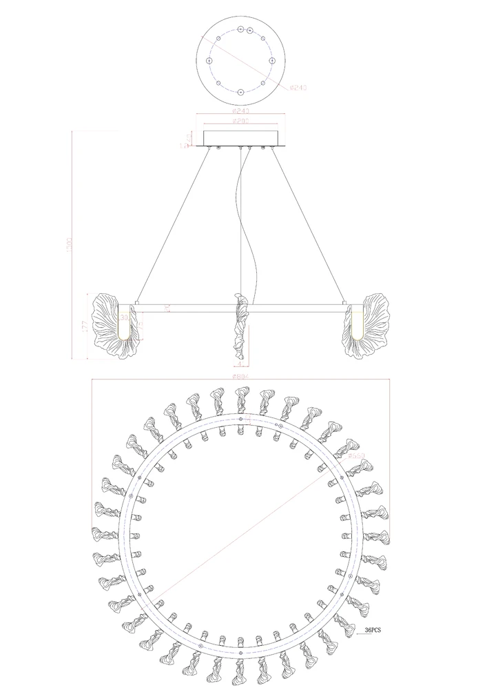 - Цвет плафонов: Прозрачный