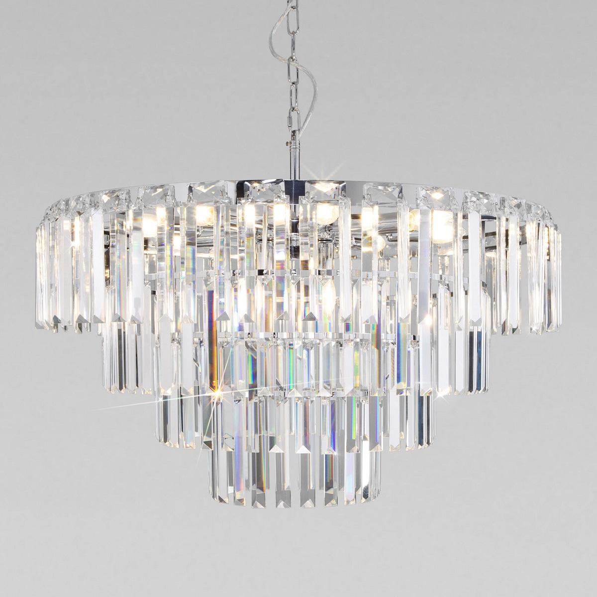 Купить "Подвесная люстра Eurosvet Elegante 10130/10 хром/прозрачный хрусталь Strotskis"