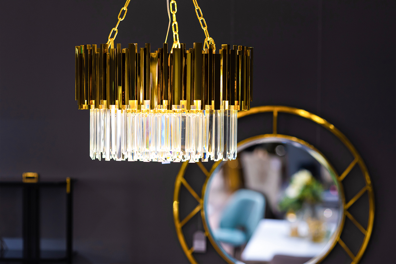 Существуют детали интерьера, которые можно с уверенностью назвать произведениями искусства. К этой категории, несомненно, относится и люстра с кристаллами из стекла. Благодаря сочетанию металлических пластин и декора из прозрачного стекла, модель приобрела фантастическую притязательность. В дневное время суток люстра вступает в роли элегантного украшения, а при в включенном свете она превращается в предмет фантастической роскоши. Среди других преимуществ модели стоит отметить универсальность. Одинаково успешно будет смотреться люстра в комнатах, оформленных в стилях ар-деко, фьюжн или неоклассика.