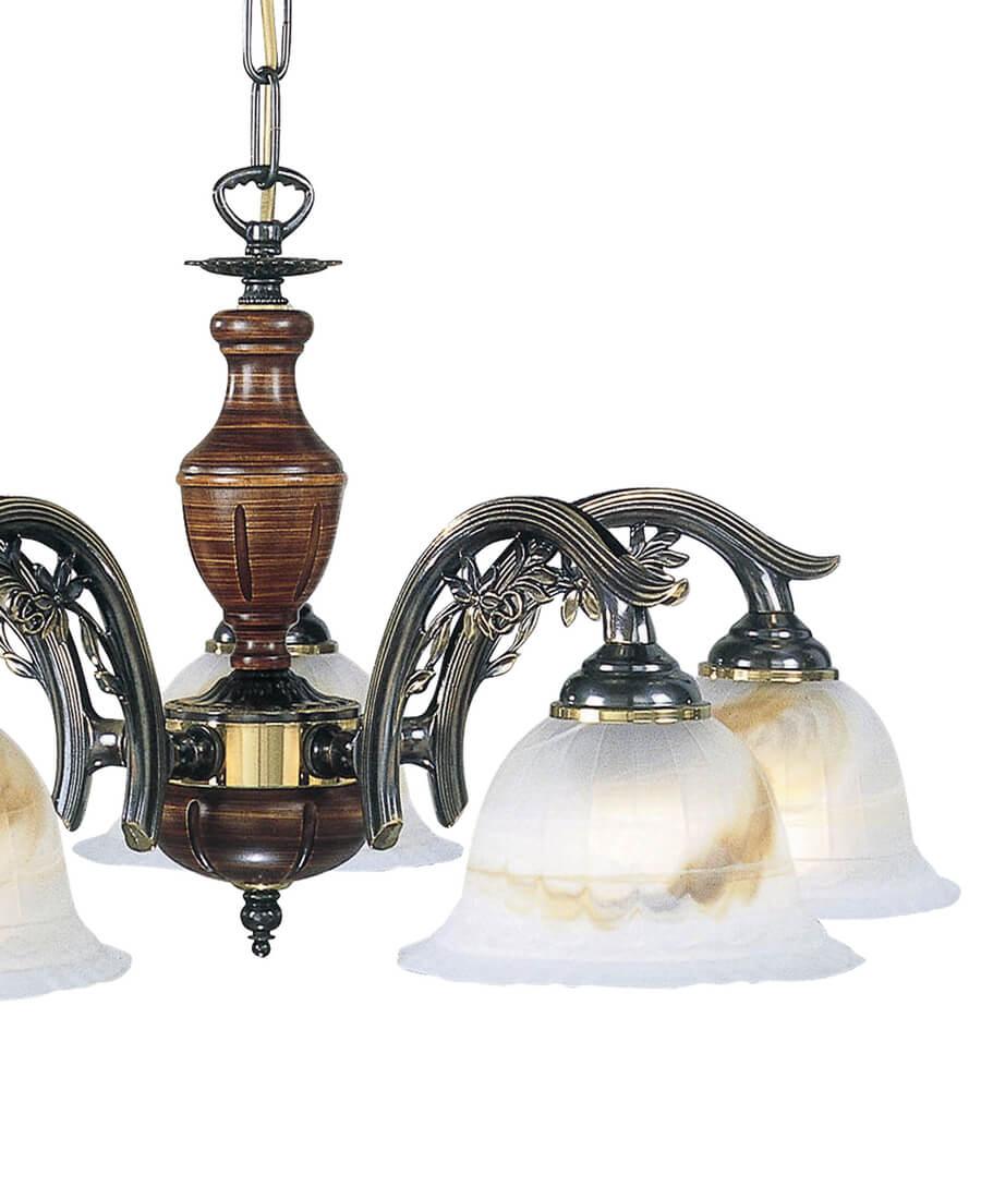 Подвесная люстра Reccagni Angelo L 2701/5 Итальянского производсва – отличный выбор для Вас. Этот светильник Классического стиля хорошо подойдет Для гостиной и придаст помещению мягкий и приятный свет. Плафоны белые из стекла. Арматура бронза из металла. Кол-во ламп - 5шт. Общая мощность 300W