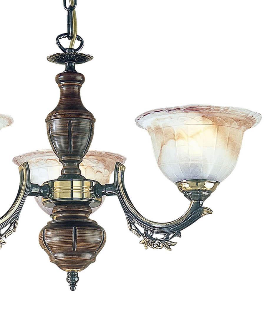 Подвесная люстра Reccagni Angelo L 2801/3 Итальянского производсва – уникальное сочетание высокого качества и удивительных фактур. Этот светильник Классического стиля хорошо подойдет Для спальни и придаст помещению мягкий и приятный свет. Плафоны белые из стекла. Арматура бронза из металла. Кол-во ламп - 3шт. Общая мощность 180W