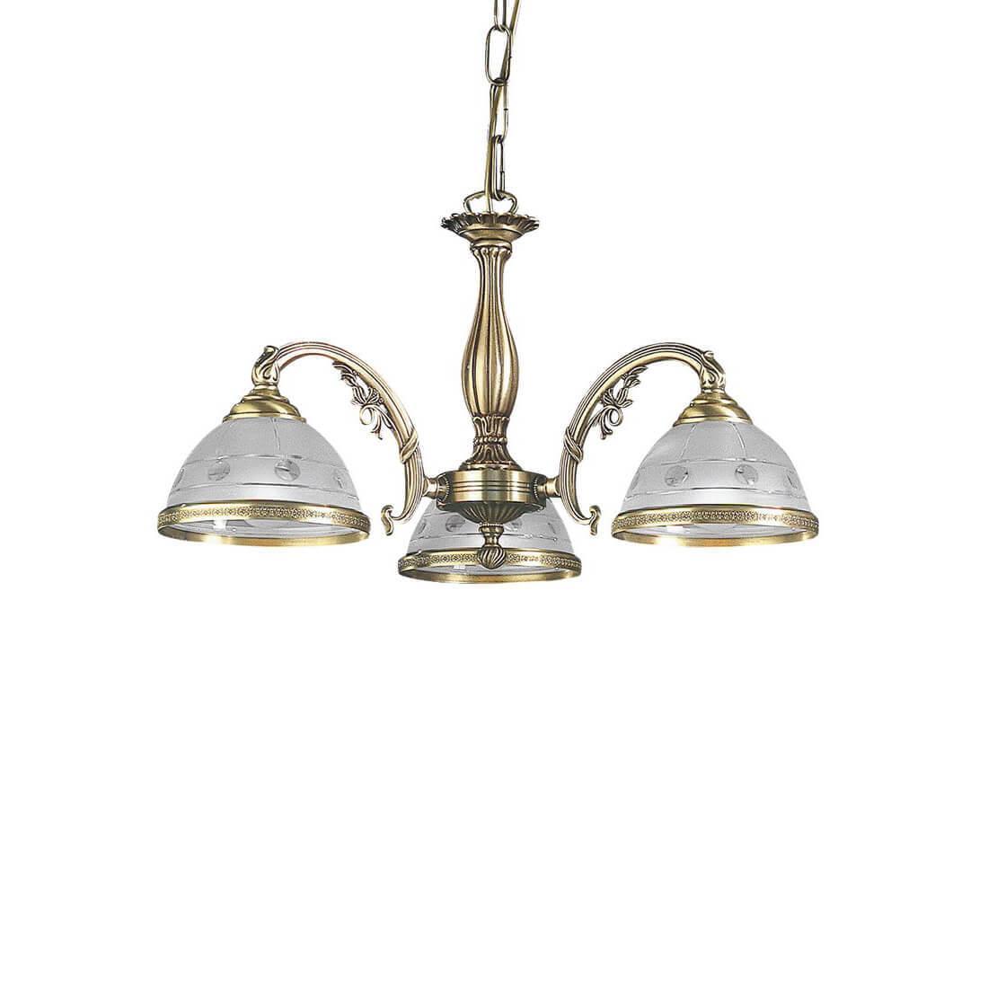 Подвесная люстра Reccagni Angelo L 3830/3 Итальянского производсва – лучшее соотношение цена-качество. Этот светильник Классического стиля хорошо подойдет Для спальни и придаст помещению мягкий и приятный свет. Плафоны белые из стекла. Арматура бронза из металла. Кол-во ламп - 3шт. Общая мощность 180W