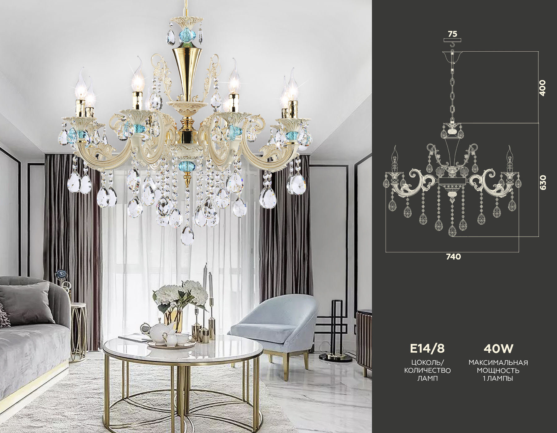 - Количество плафонов: 8