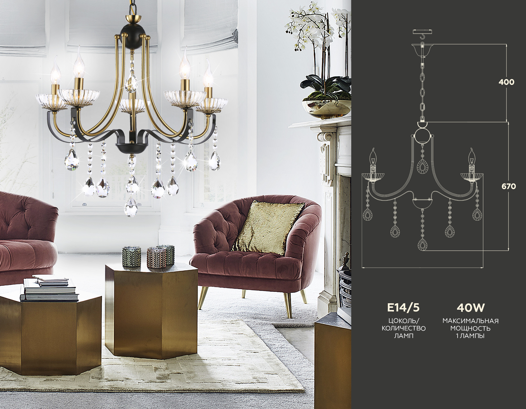 - Количество плафонов: 5