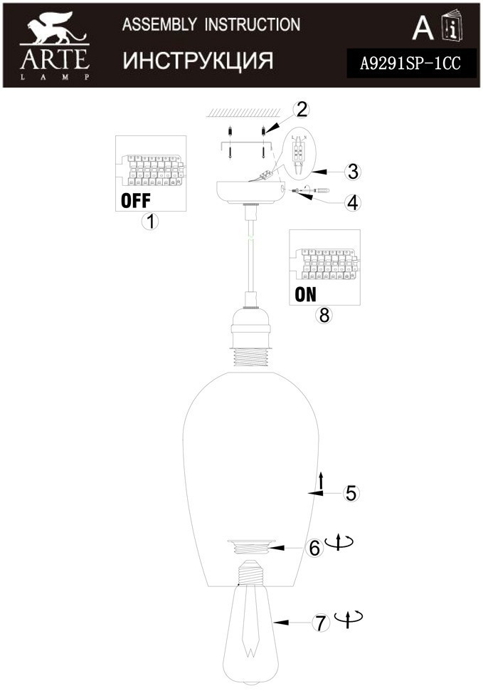 Подвесной светильник Arte Lamp A9291SP-1CC в Иваново