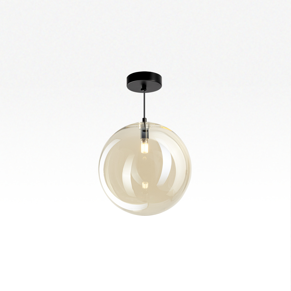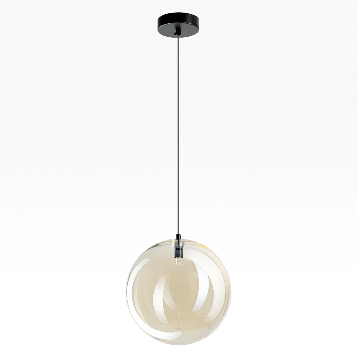 овременный подвесной светильник Citilux ORTON CL202042 представляет собой гармоничное сочетание правильных геометрических форм и воздушной лёгкости. Прозрачный стеклянный шар с золотистым оттенком шампань, подвешенный на чёрном матовом металлическом основании, выглядит эффектно при любом освещении.