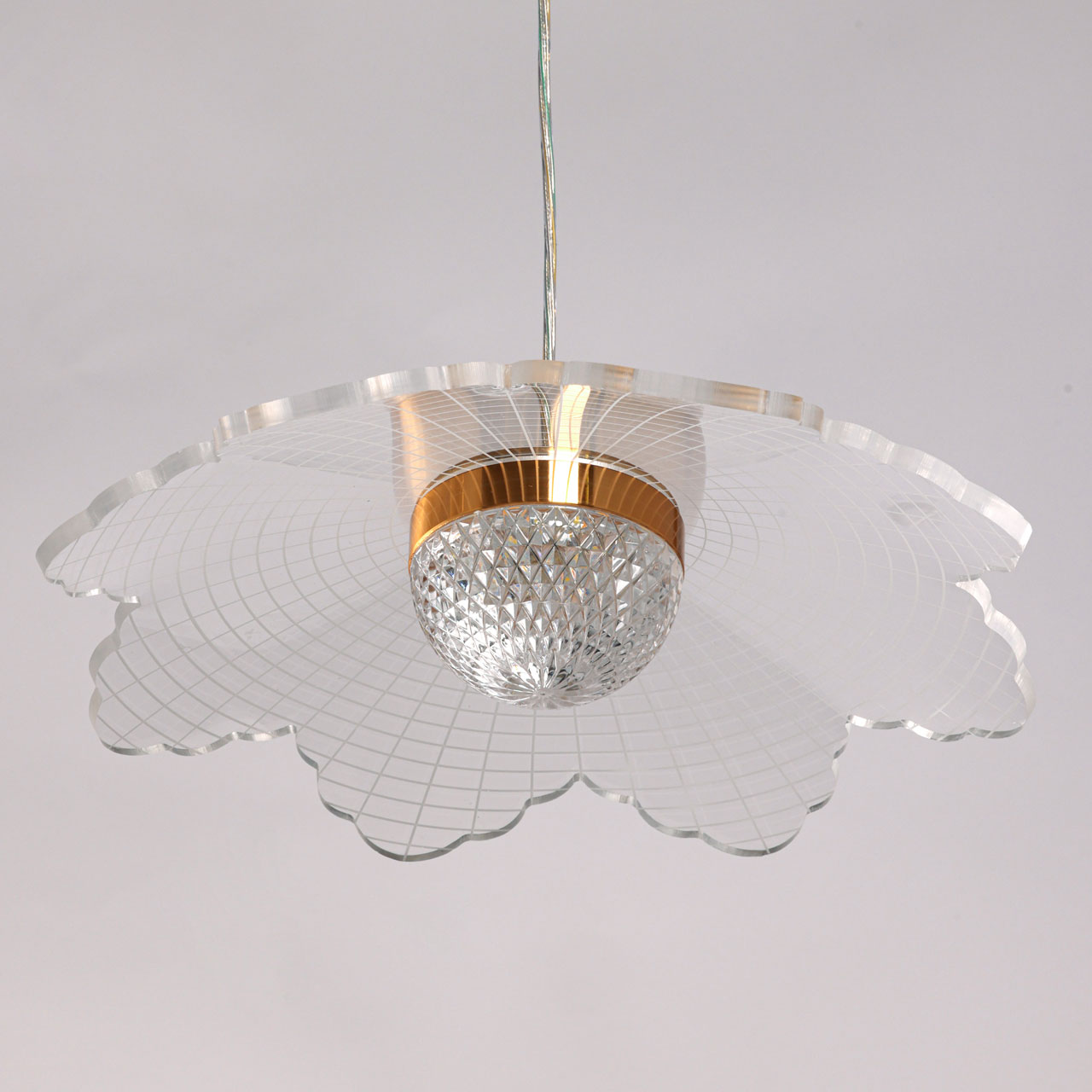 Металлическое основание светильника гальванизировано в цвет золота. Корпус плафона выполнен из сплава алюминия с цинком. Плафоны выполнены из прозрачного акрила.