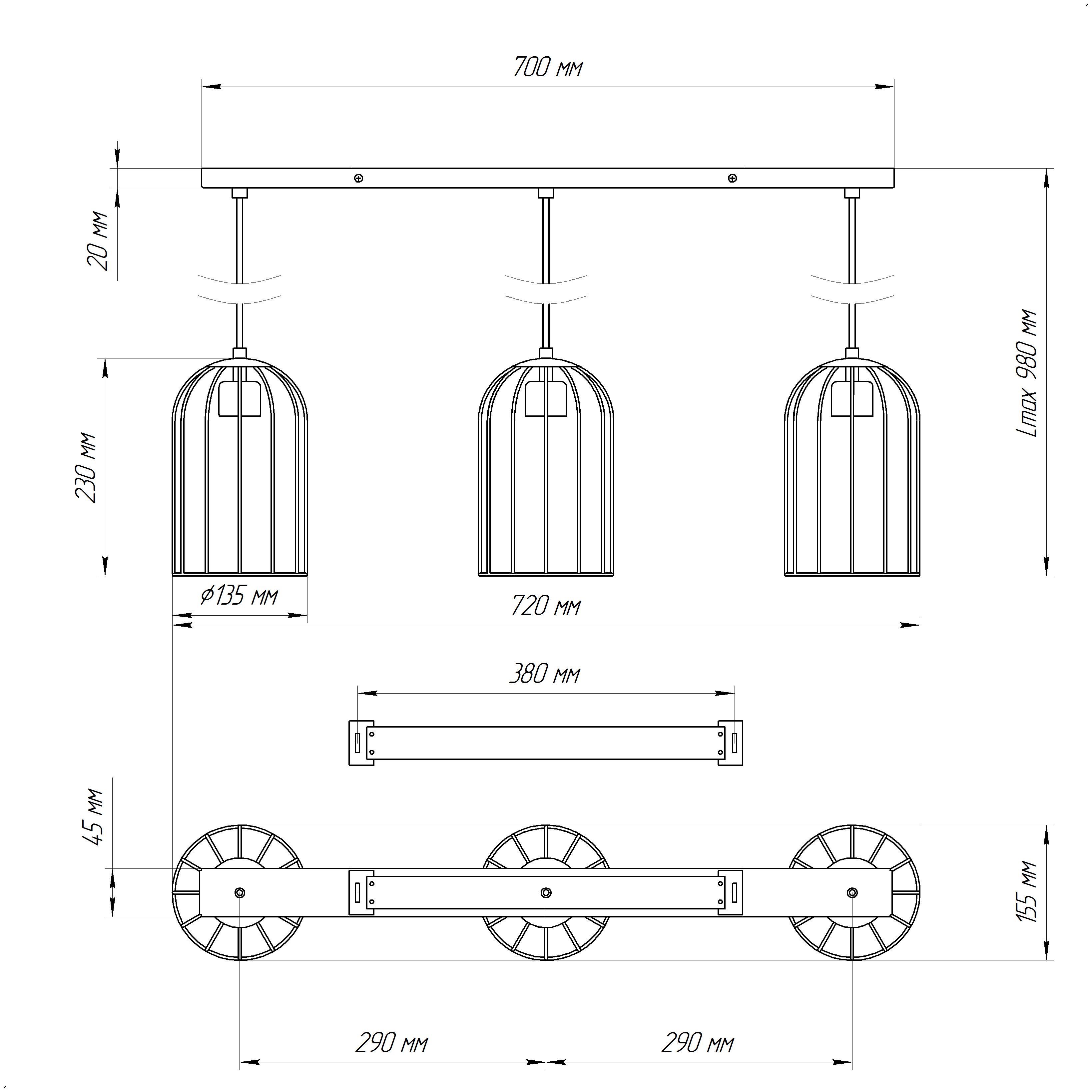 - Количество ламп: 3 шт