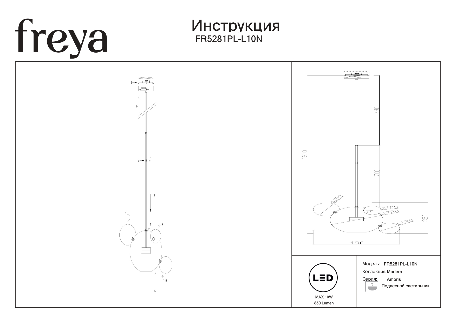 Купить "Подвесной светодиодный светильник Freya Amoris FR5281PL-L10N"