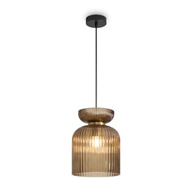 Материал арматуры — металл, цвет — черный. Подвесной светильникс цоколем E27. Рельефный стеклянный плафон восточной формы, с рельефным стеклом в двух цветах:коричневый и дымчатый. Подходит для интерьеров в неоклассическом стиле и пространств в стиле лофт.