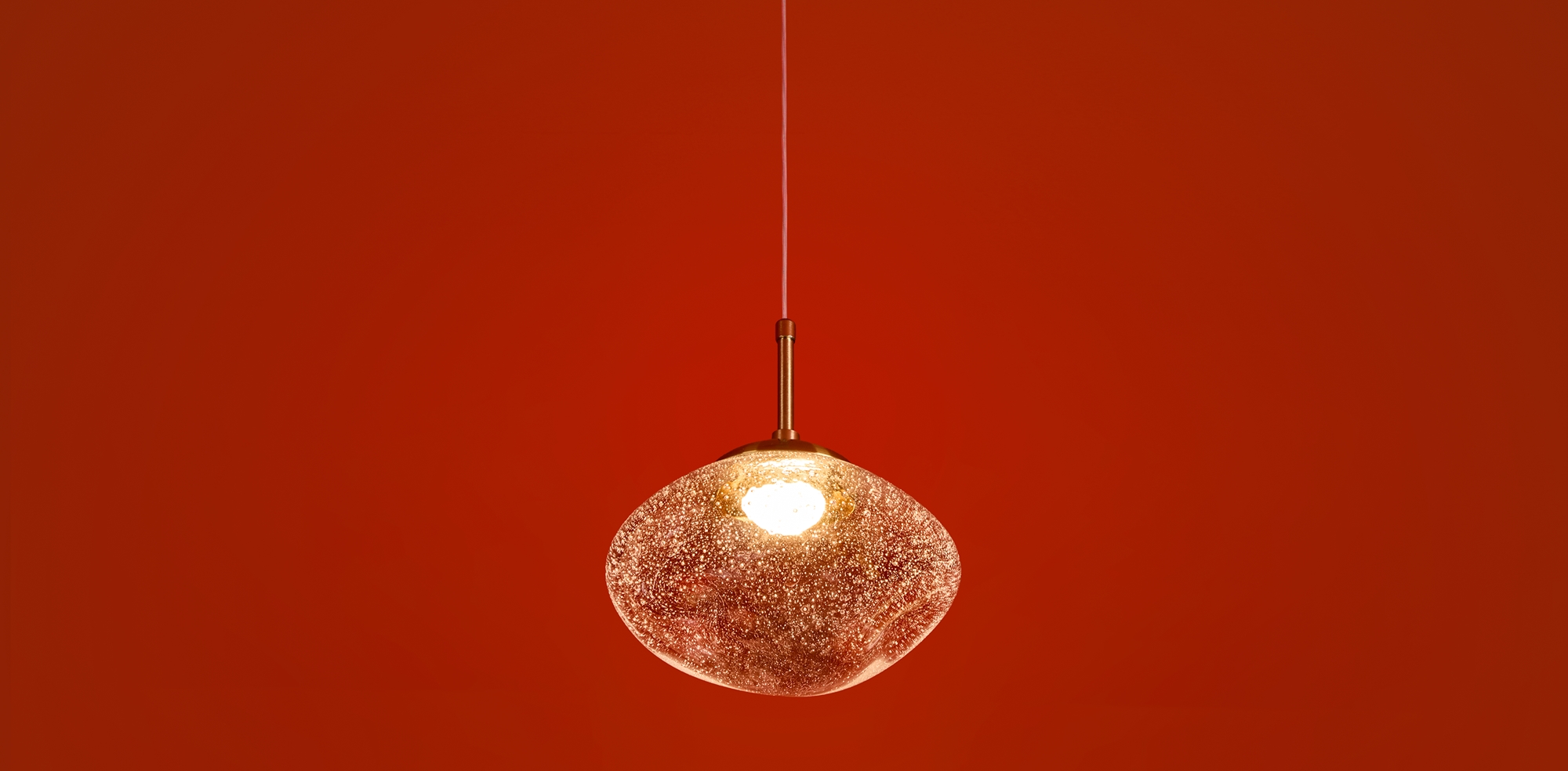 Арматура — металл. Стеклянные плафоны с пузырьками в трёх цветах: дымчатый, прозрачный, янтарный. Интегрированный LED источник света 3000К, Ra 80, угол 180°. Высота регулируется.
