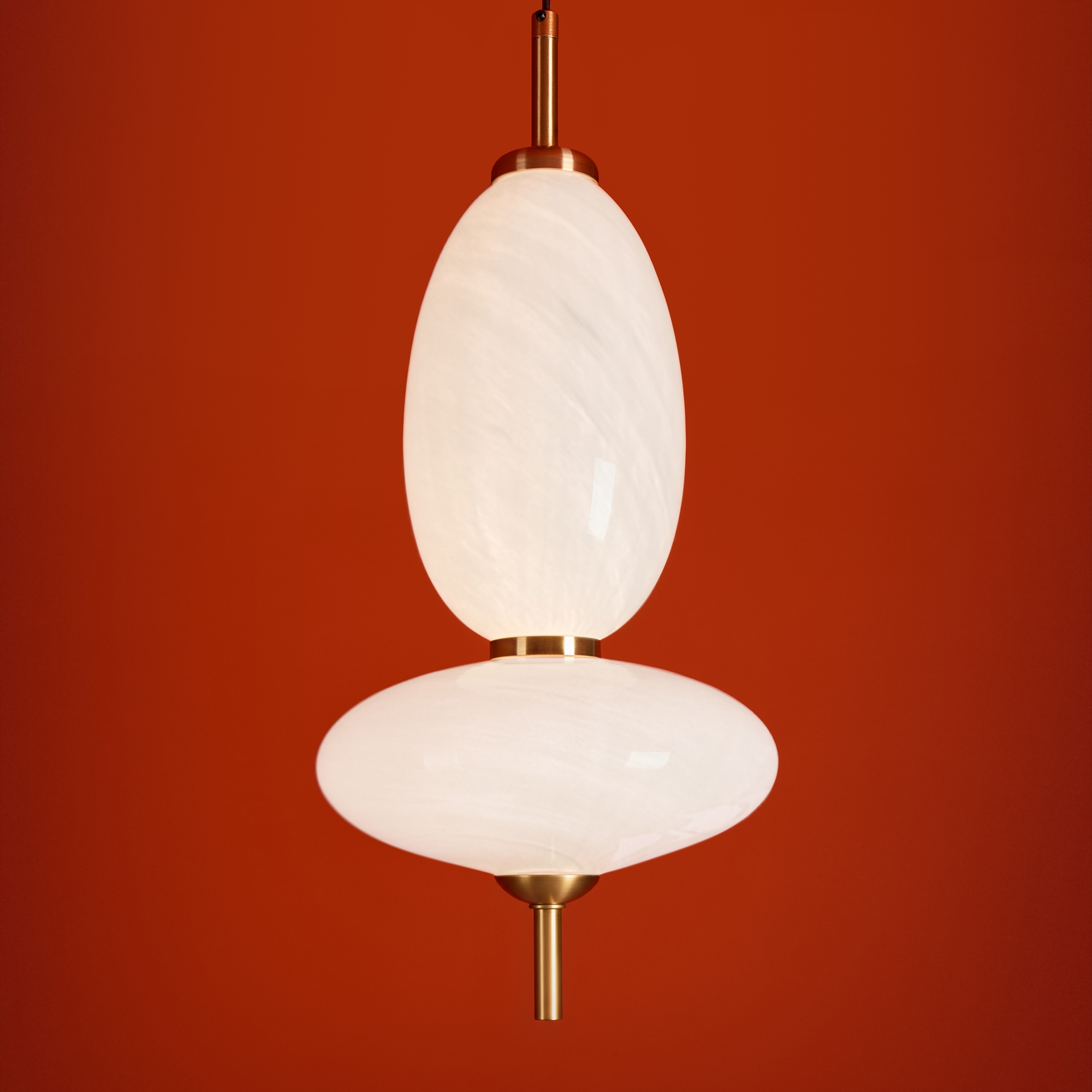 Металлическая арматура черного цвета. Глянцевые белые стеклянные плафоны с перламутровым рисунком и керамическими цветными элементами. LED источник света. Два вида подвеса.